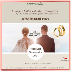 * Não inclui decoração da cerimônia, bolo, doces, bem casados, Dj. Somente o descrito.